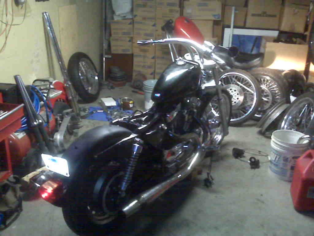 I figured out that the front end needs to be replaced no matter how many times I pound it with a hammer, so, I pull the front end off of the chopper and stick it on the sporty, poor chopper :o(